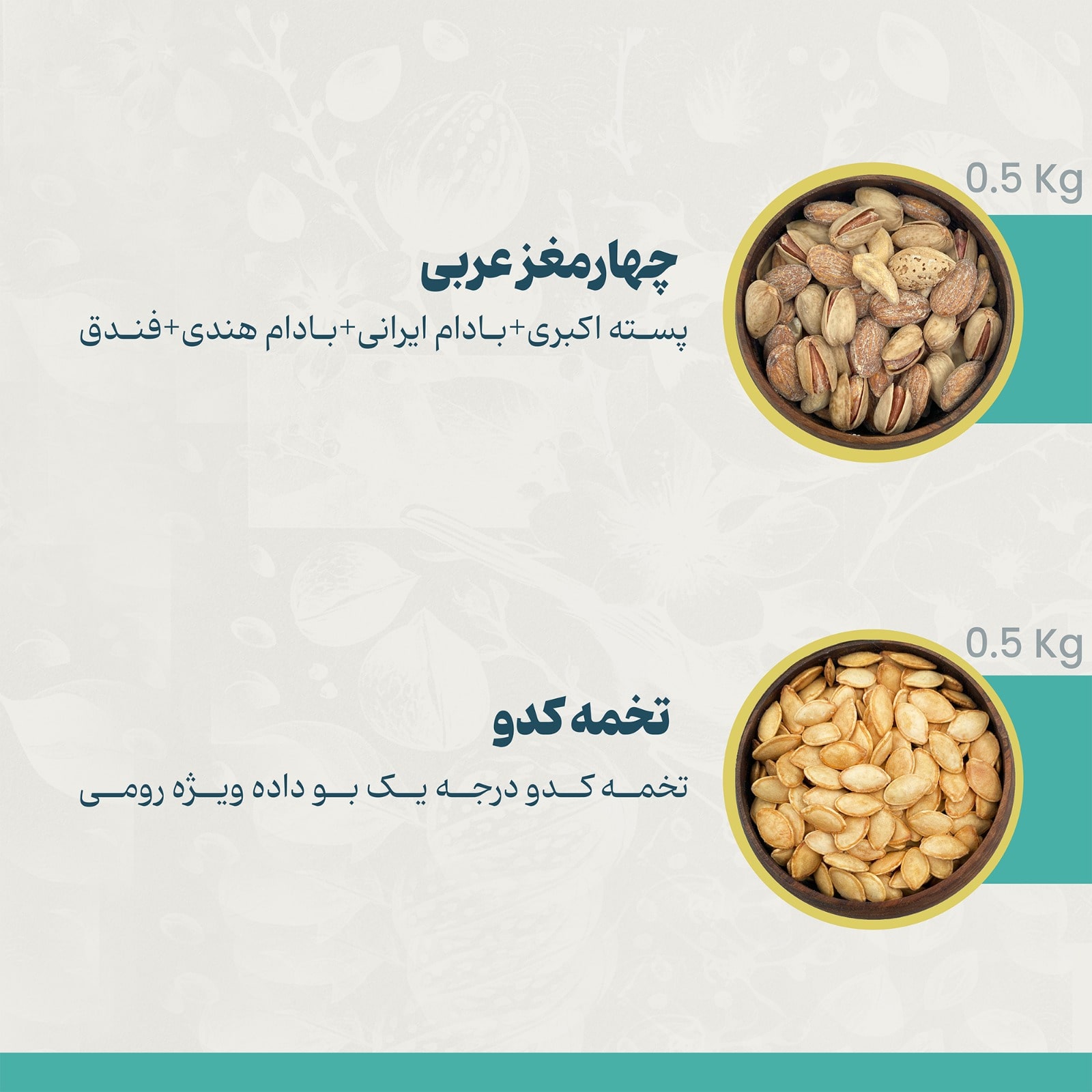 • آجیل چهار مغز عربی (پسته اکبری+بادام ایرانی+بادام هندی+فندق)